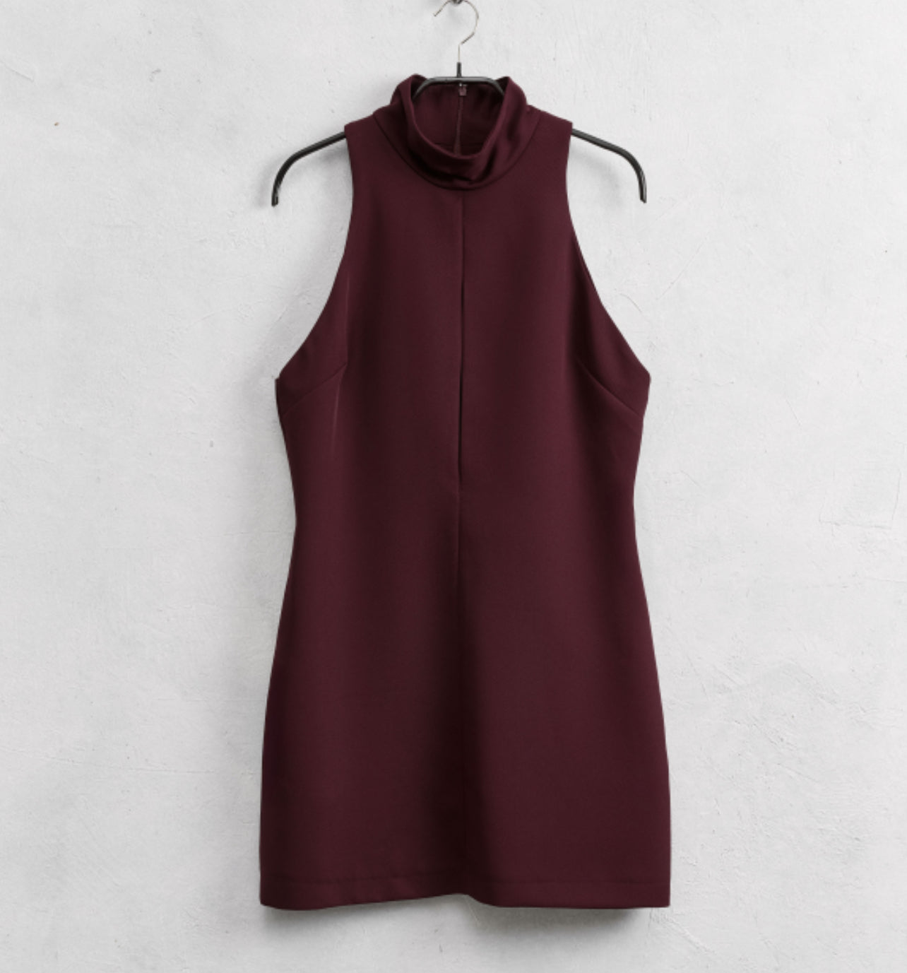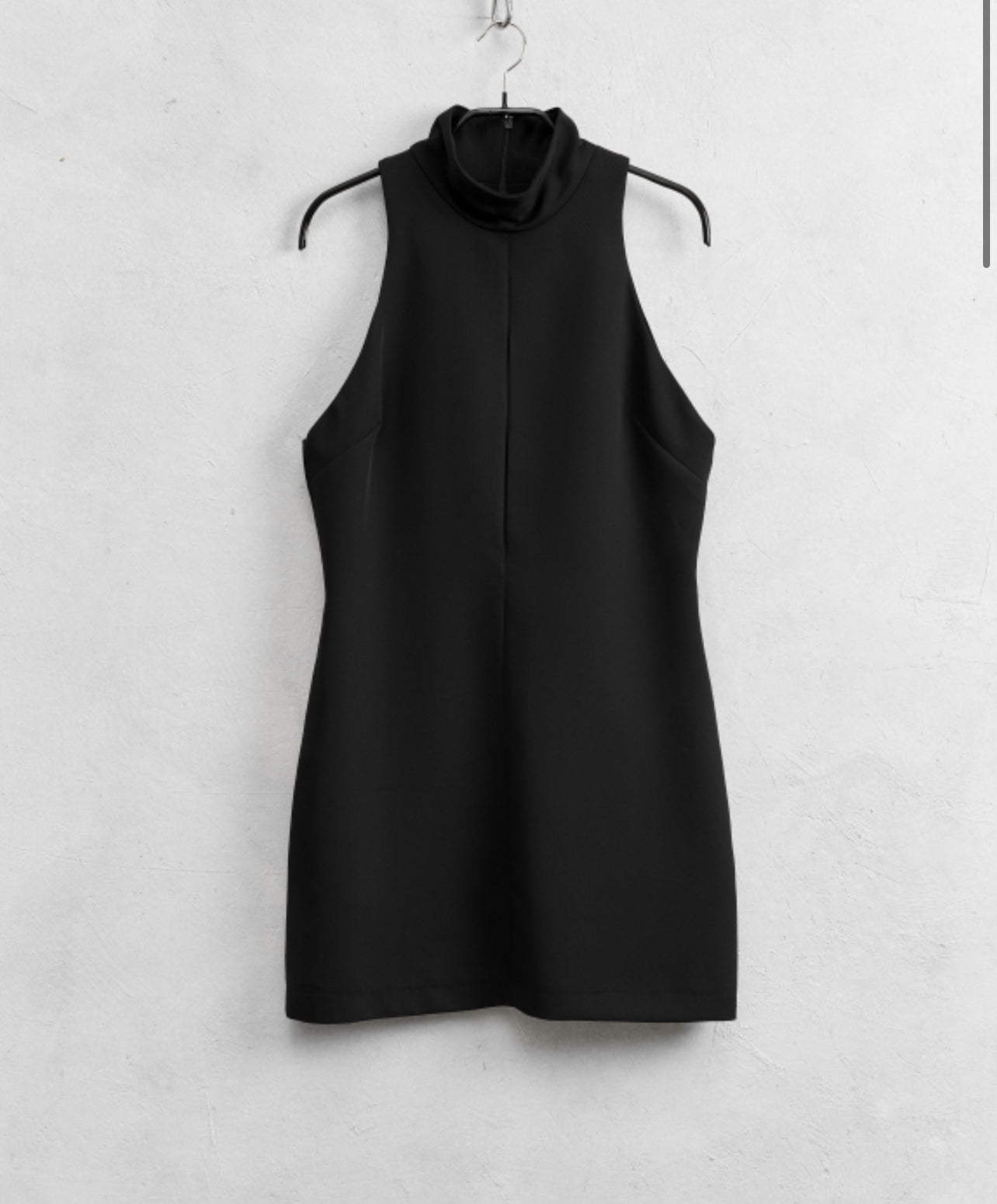 Abito mini smanicato.Presenta collo alto.Dettaglio cut-out anteriore.Tasche anteriori laterali.Vestibilità regolare, disponibile in taglia S/M/L.