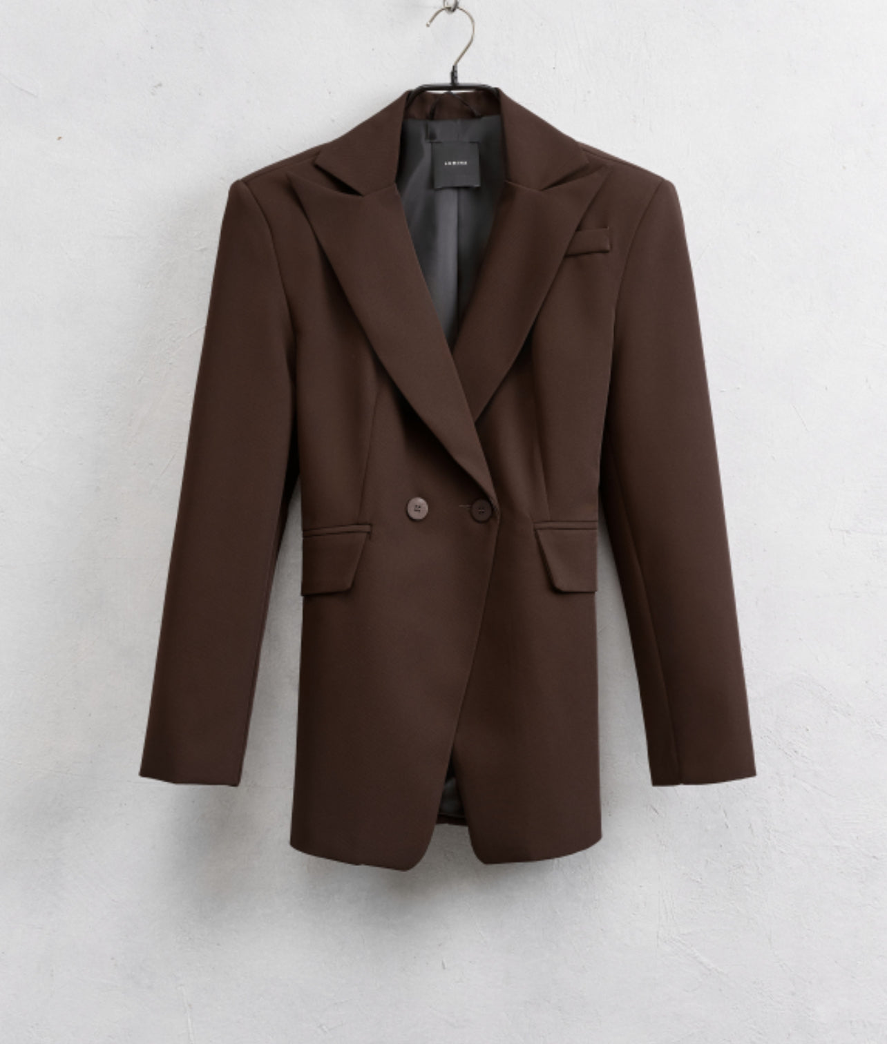 Blazer con collo a revers. Spalle imbottite. Chiusura doppiopetto con bottoni. Presenta pinces e tasche. Dettaglio laccio incrociato posteriore. Vestibilità regolare, disponibile in taglia S/M, M/L.