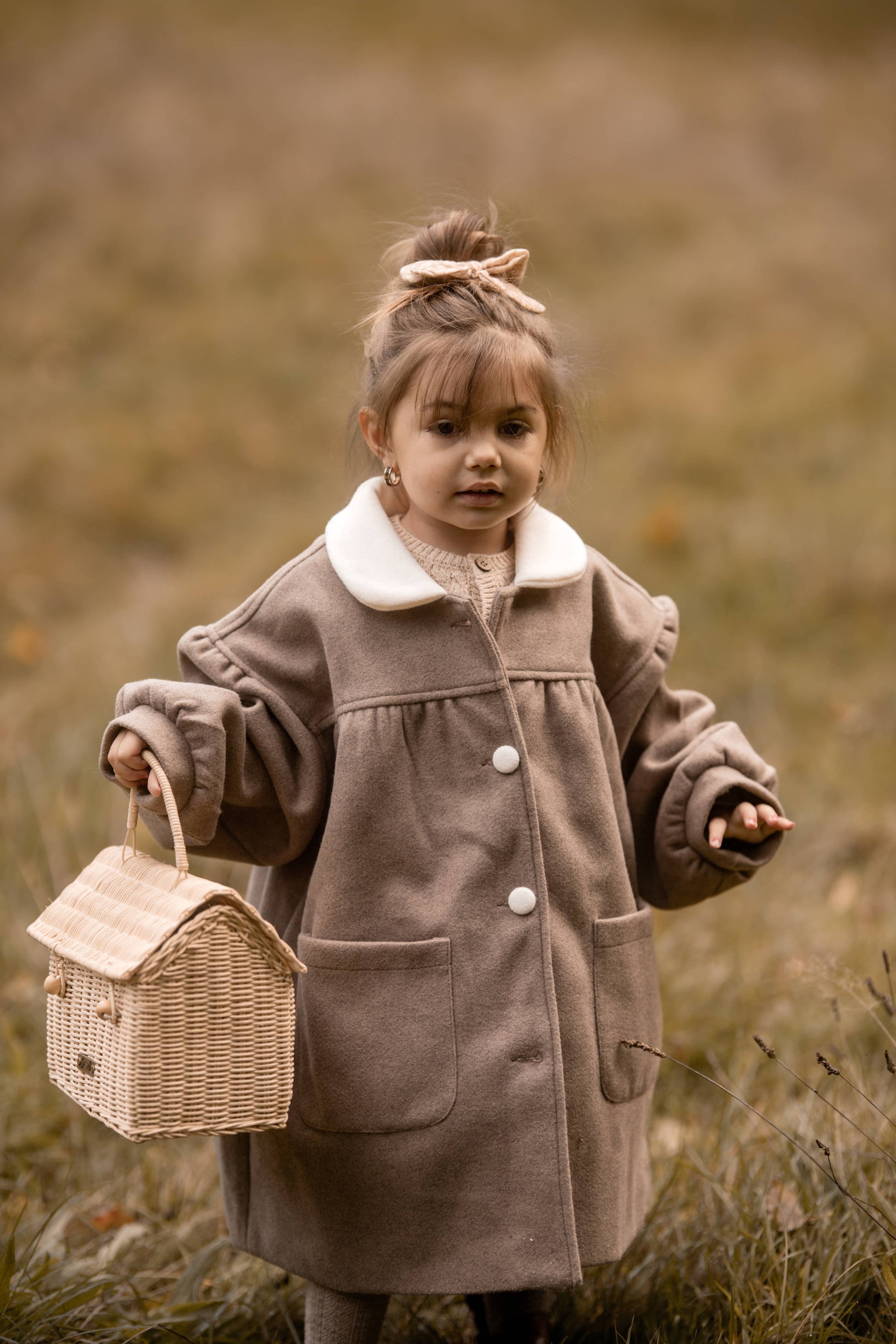 Elegante cappotto in lana con un grazioso colletto bianco.