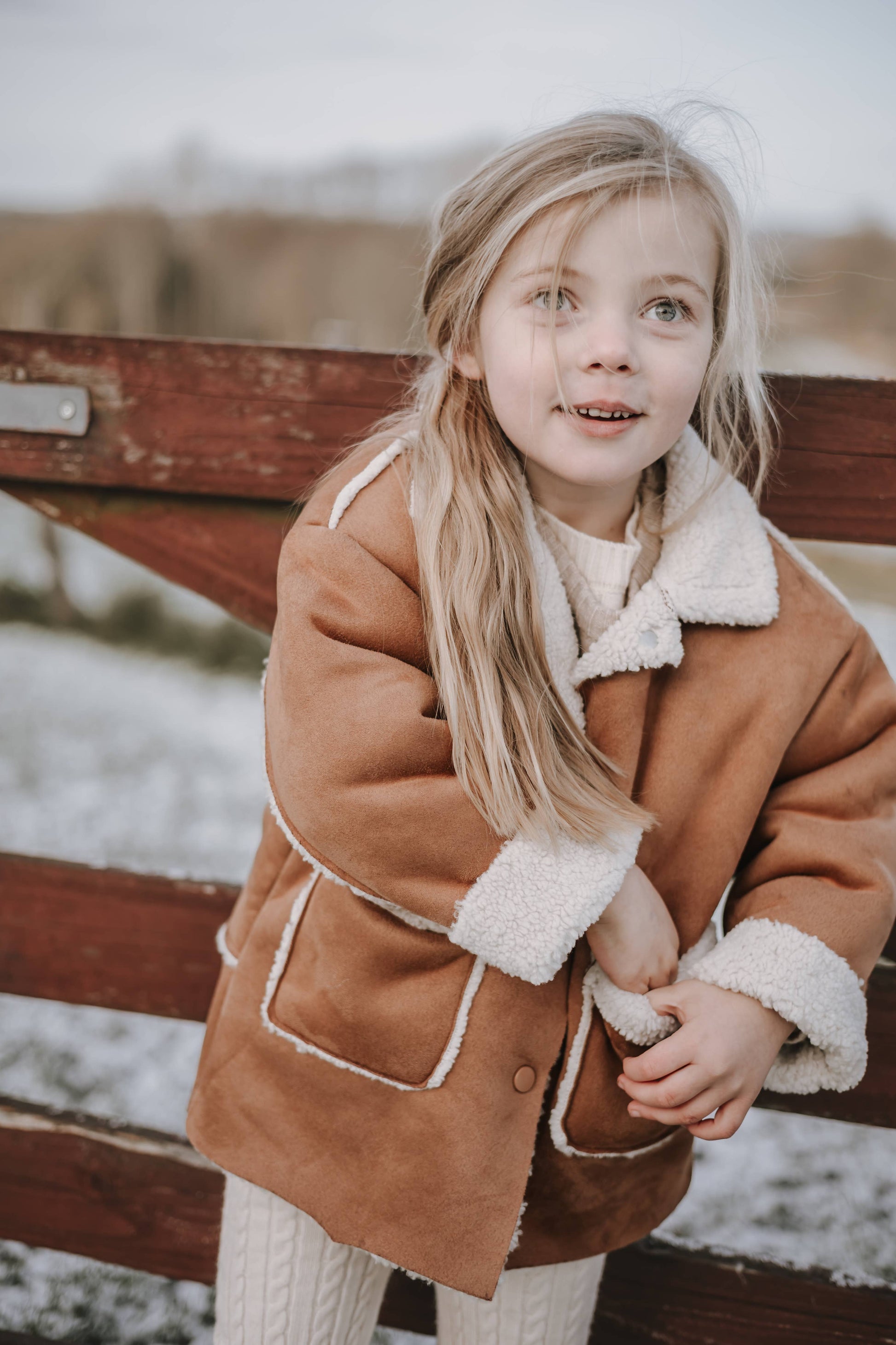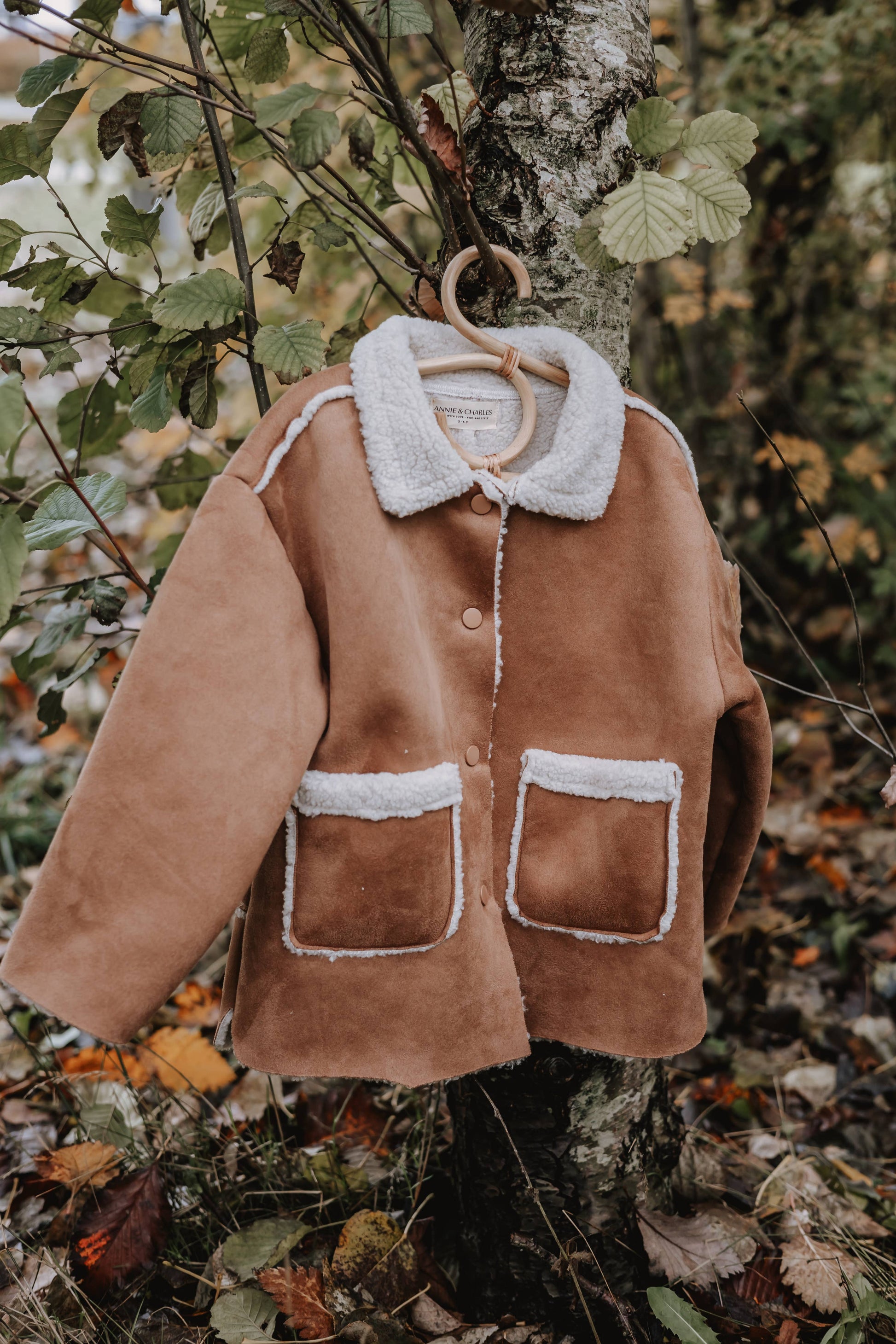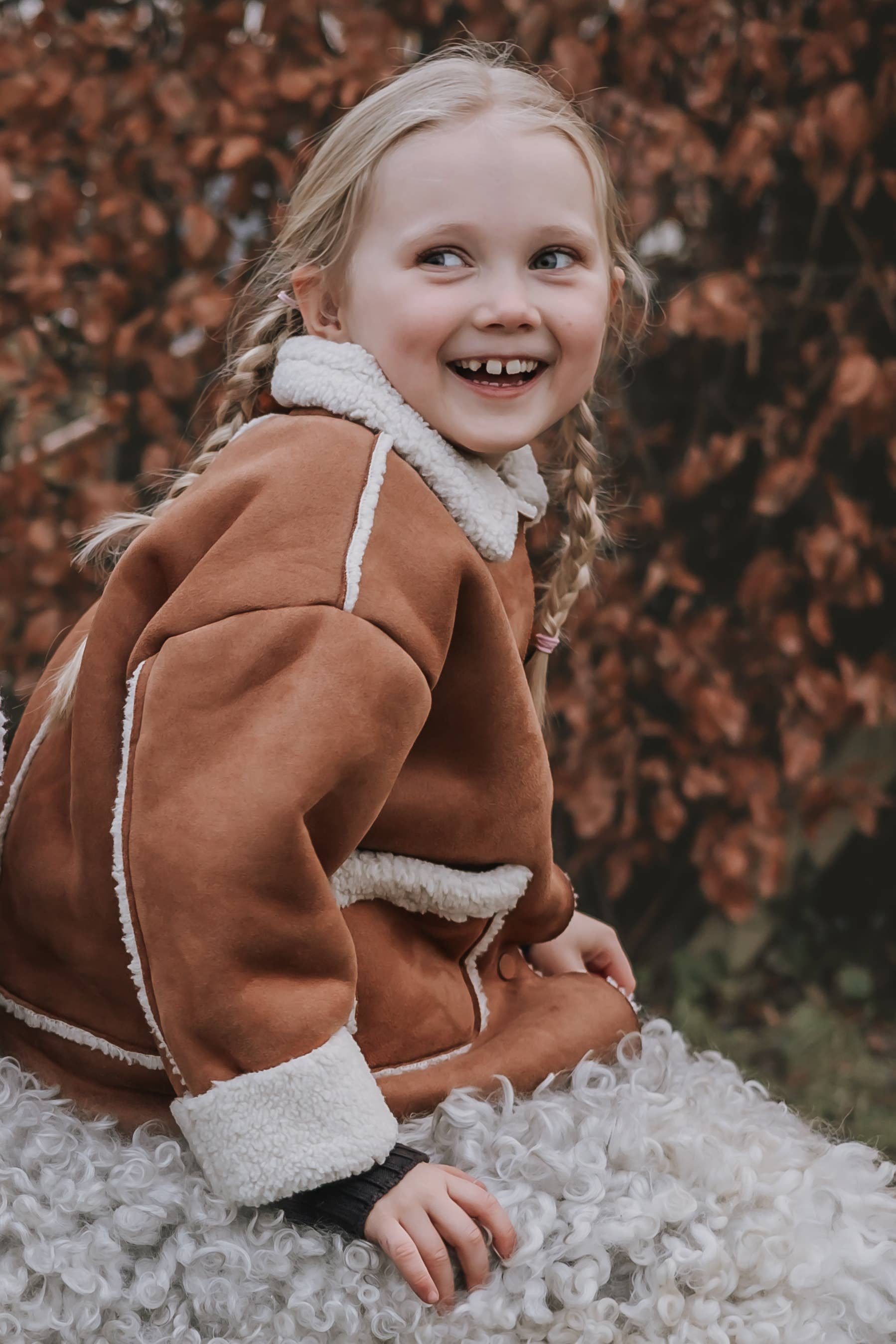 Giacca da bambino elegante e calda in morbida pelle di pecora artificiale.