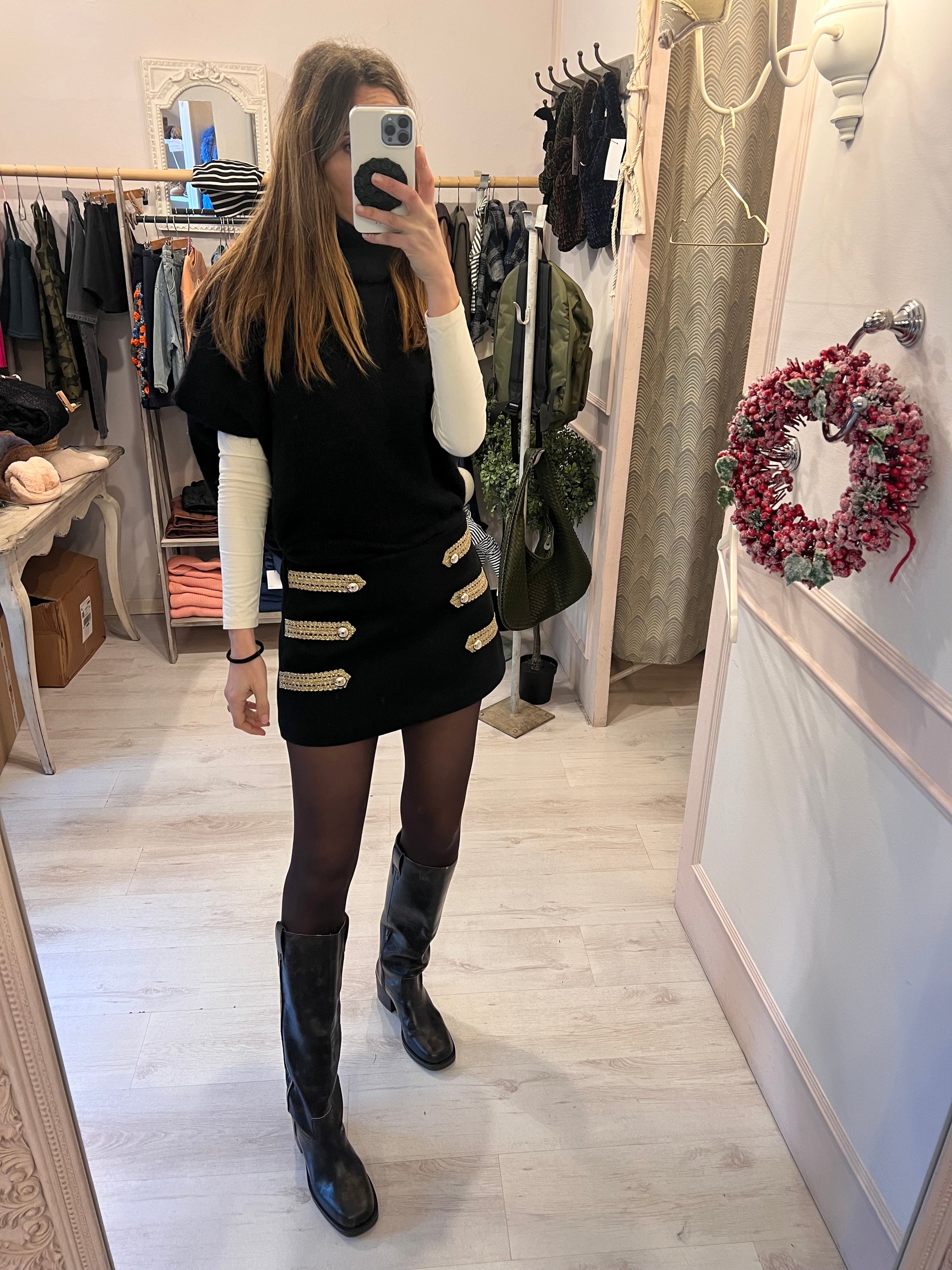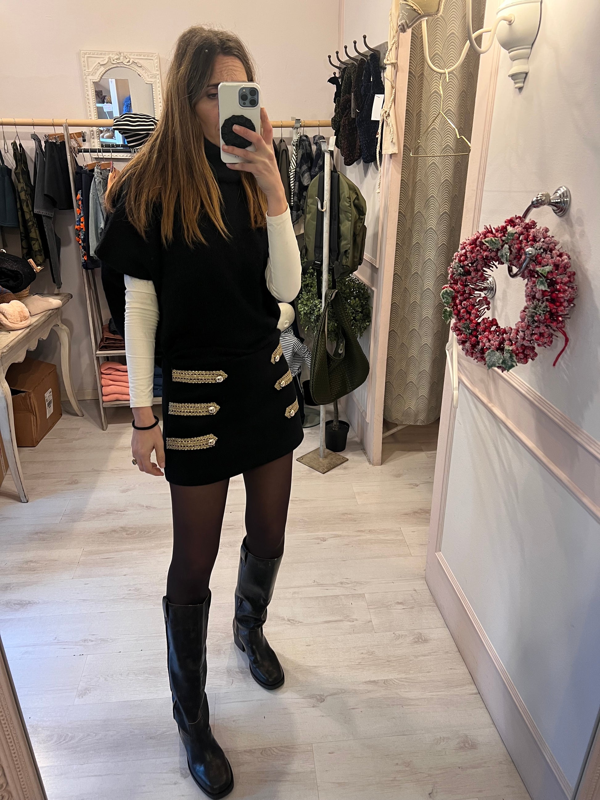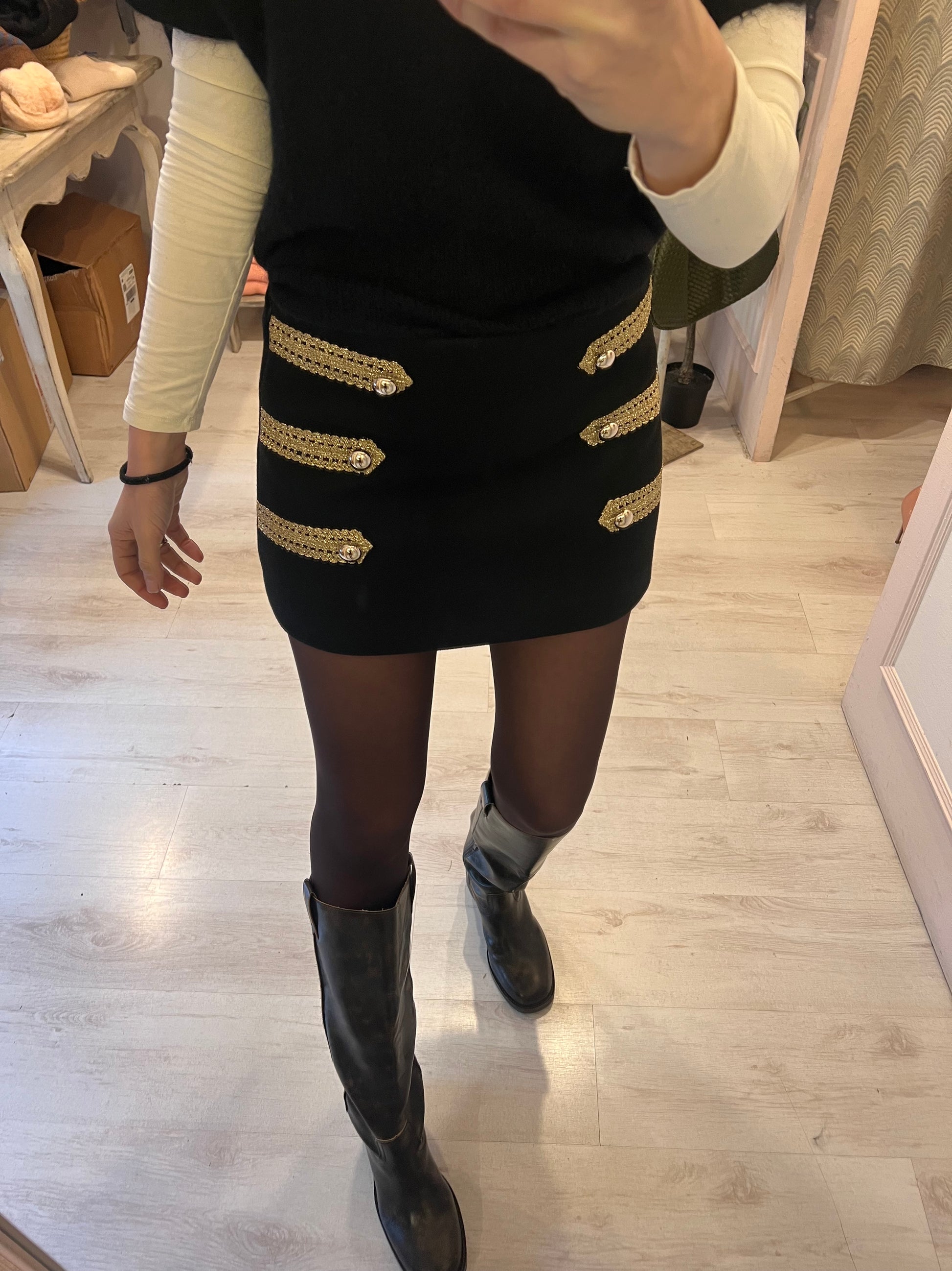 Gonna shorts nera con dettagli oro