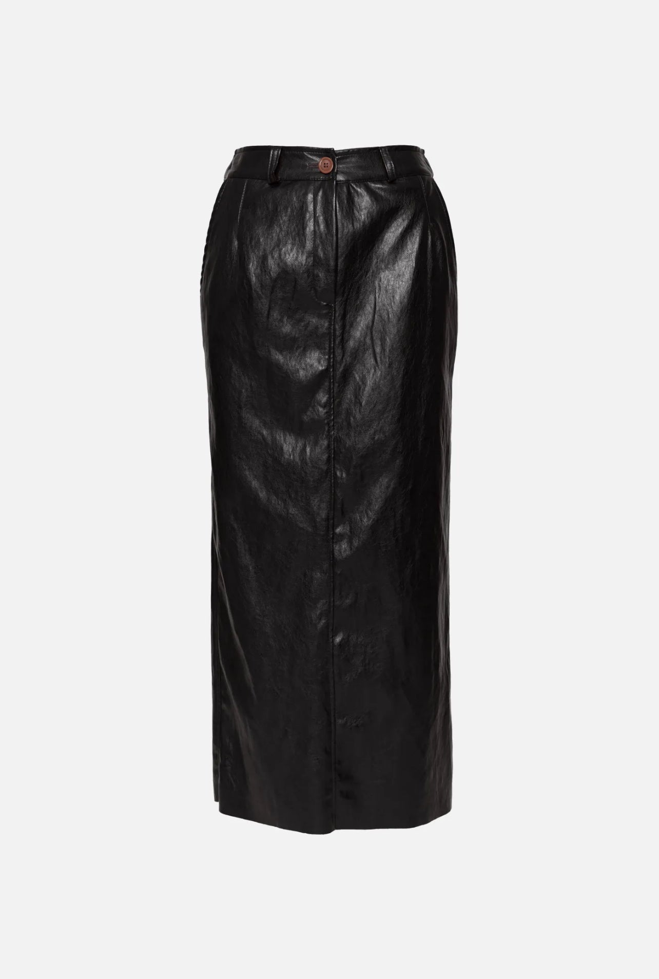 Gonna tubino in ecopelle con bottone centrale e spacco sul retro