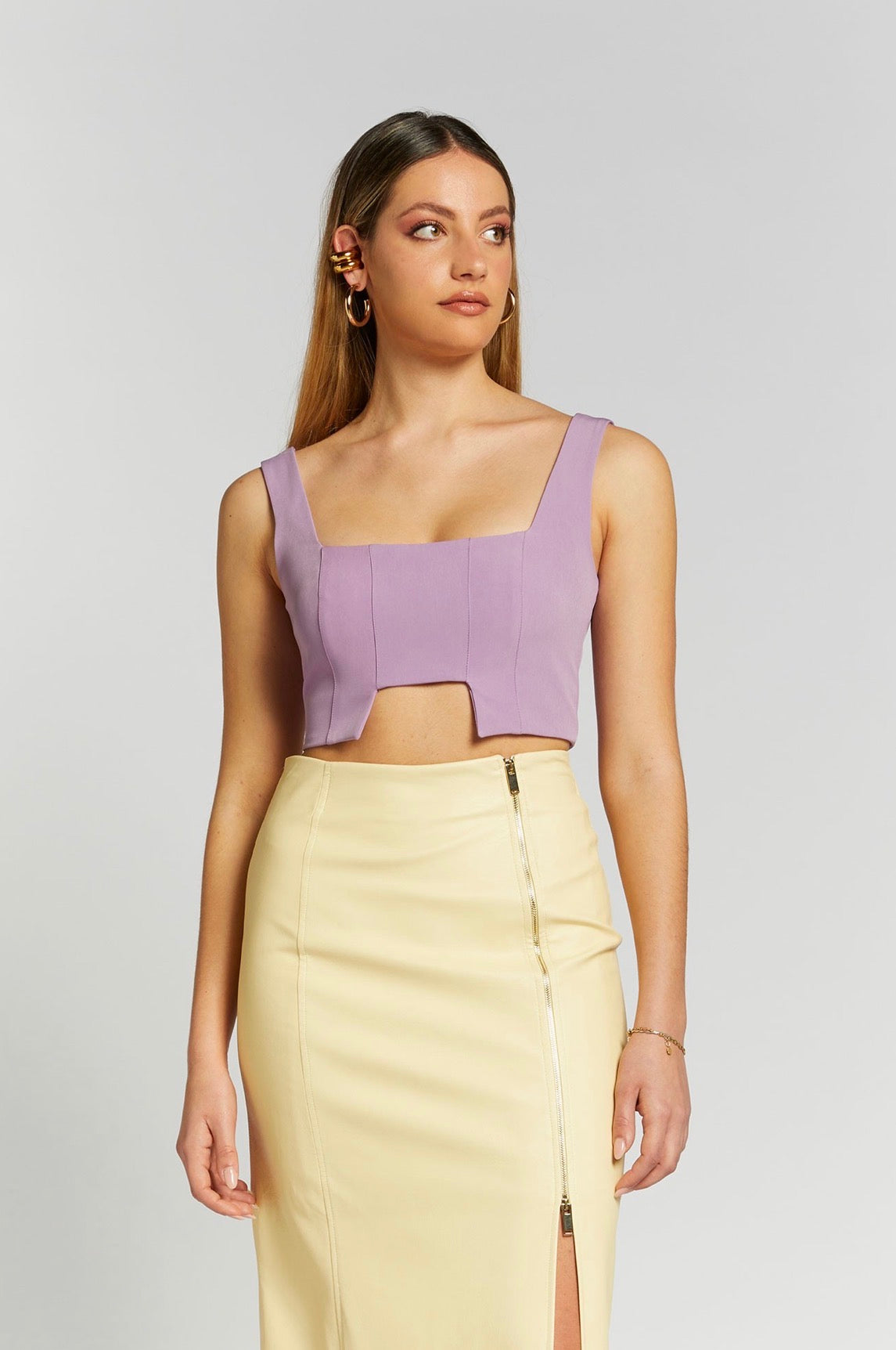 Top bustier Giuggiola in tessuto riciclato tinta unita stretch con zip di metallo dietro.